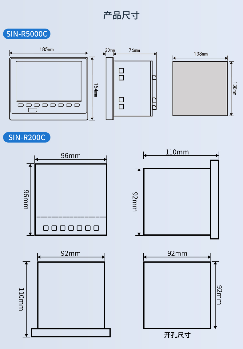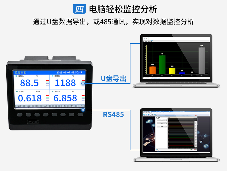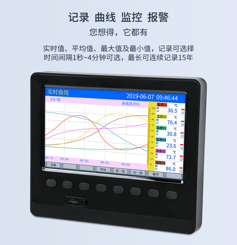 SIN-R5000C無(wú)紙記錄儀 12 路萬(wàn)能輸入(可組態(tài)選擇輸入:標(biāo)準(zhǔn)電壓、標(biāo)準(zhǔn)電流、熱電偶、熱電阻、毫伏等)。可帶 12 路報(bào)警輸出或 6 路模擬量變送輸出,RS485 通訊接口,以太網(wǎng)接口,微型打印機(jī)接口和 USB 接口,SD 卡插座;可提供傳感器配電;具有強(qiáng)大的顯示功能,實(shí)時(shí)曲線顯示,歷史曲線追憶,棒圖顯示,報(bào)警列表顯示等。人性化的外觀設(shè)計(jì)、完美的功能體現(xiàn)、可靠的硬件品質(zhì)、精湛的制造工藝,使儀表具有更高的性能價(jià)格比。