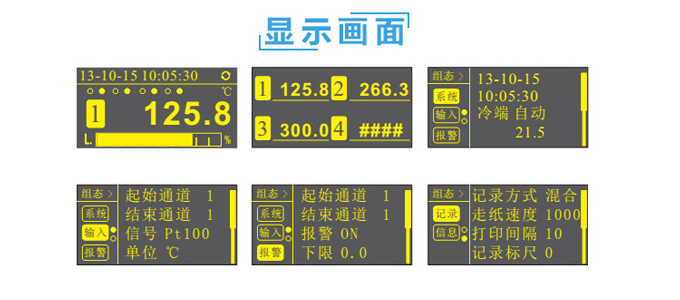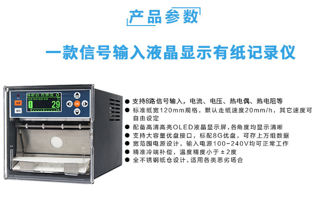 SIN-R1200有紙記錄儀最多具有8路輸入通道,通道之間采用點點隔離的方式。每路通道均可以接收多種信號,如:熱電偶信號、熱電阻信號、電壓信號、電流信號等。記錄儀可以對被測信號進行數字顯示、趨勢記錄以及數字記錄,能在110mm寬的紙格上同時記錄刻度值、時間以及每個信號的曲線并且將通道號印在各通道的軌跡旁邊。